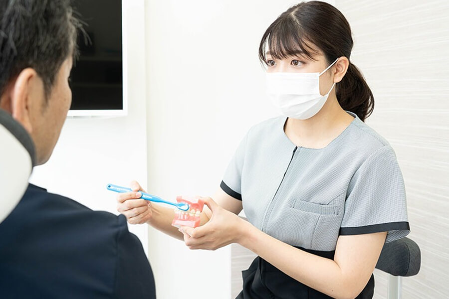 まずは患者様自身で予防できるよう正しいセルフケアについて丁寧にお伝えしていき、歯科医院によるプロのケアを合わせながら、虫歯や歯周病になりにくい口内をつくっていきます。