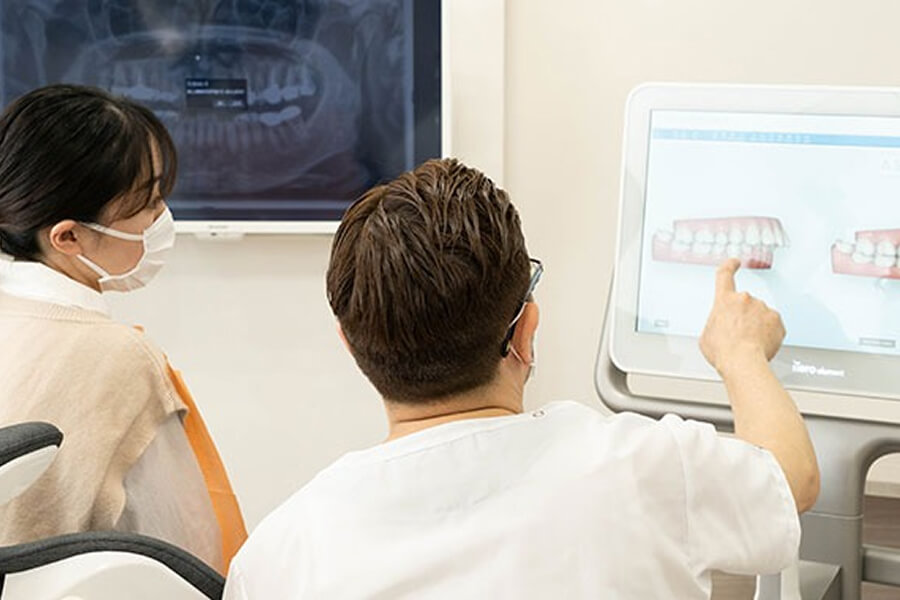 歯科医師により、疾患に関する専門的な説明・どのような治療を行っていくかを説明していますが、 患者さまにとってベストな治療が何なのかは、患者さまの治療に対する考え方などによって異なるため、 最終的には患者さまに決断していただくことになります。 例えば、インプラントや矯正など費用がかかる部分については支払いの選択がどんなものがあるか、 歯科医師に相談しにくいことなどがあった場合に、カウンセリング専任のスタッフが常駐することで、 じっくりとお話ができる環境があります。 そこで、患者さまの悩みや不安を拾い上げ、医師に繋ぐという役割があります。